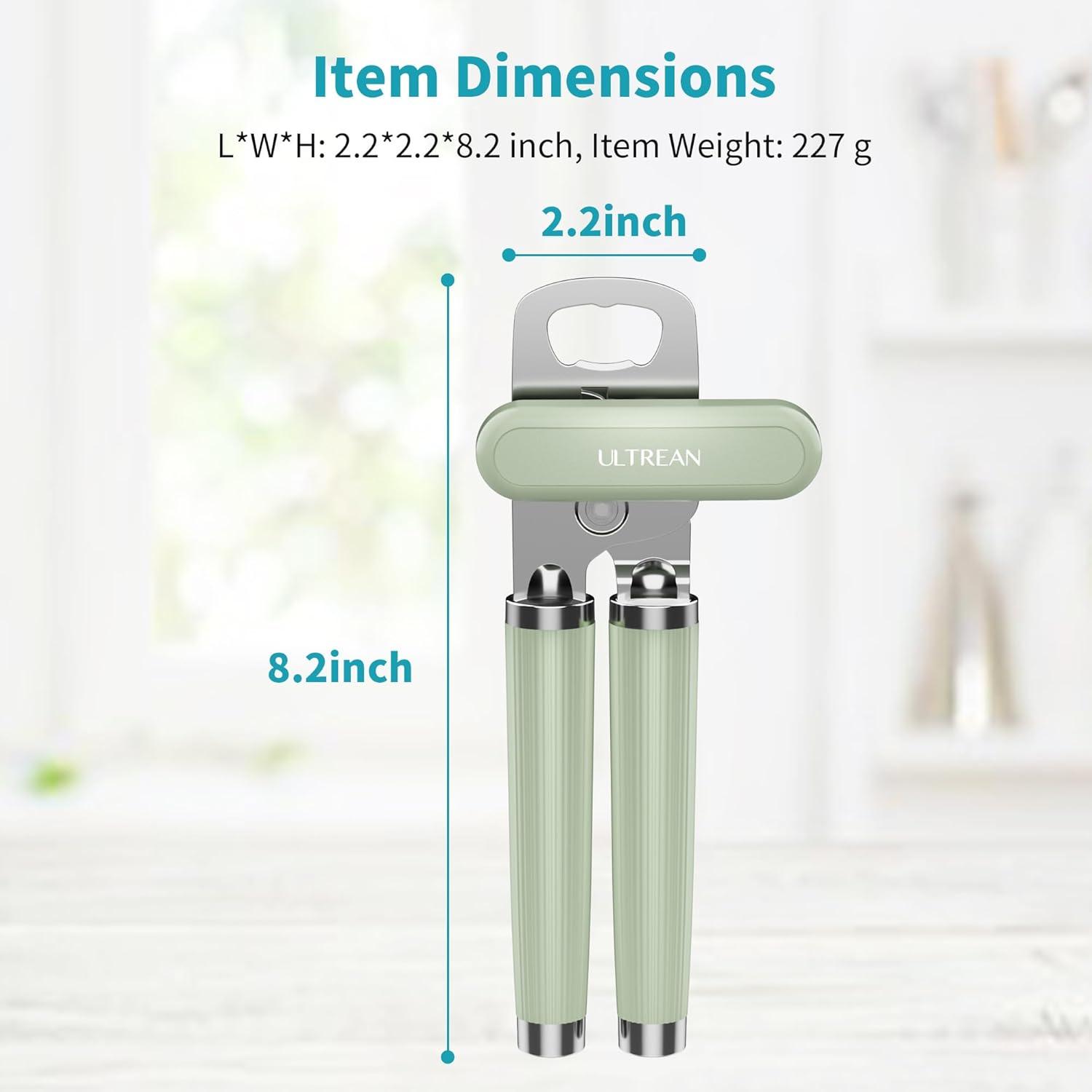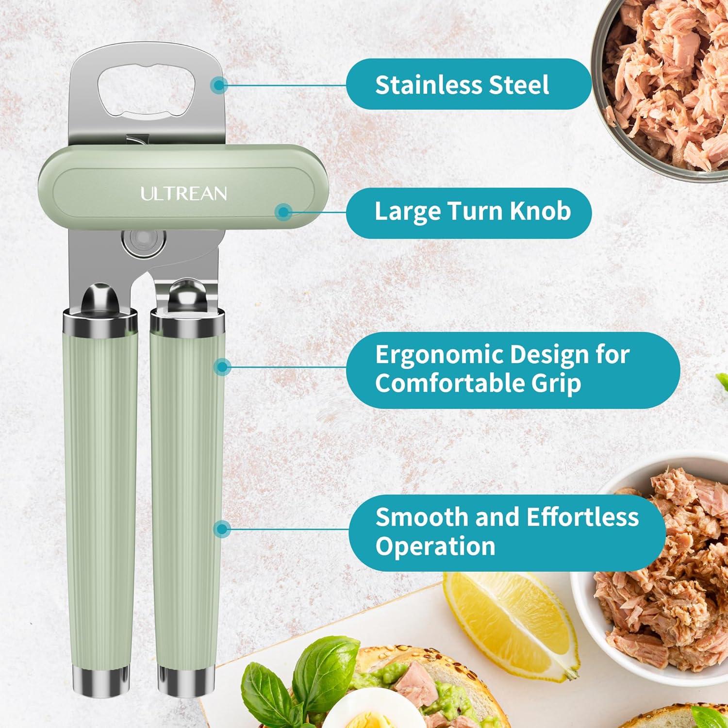 imageUltrean Manual Can Opener Bottle Opener Heavy Duty Stainless Steel Smooth Edge Manual Hand Held Can Opener With Soft Touch Handle Rust Proof Oversized Handheld Easy Turn Knob GrayGreen