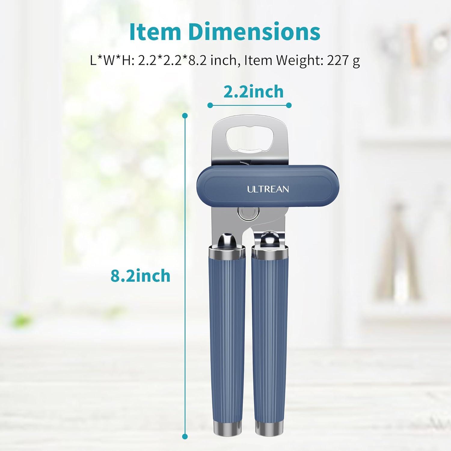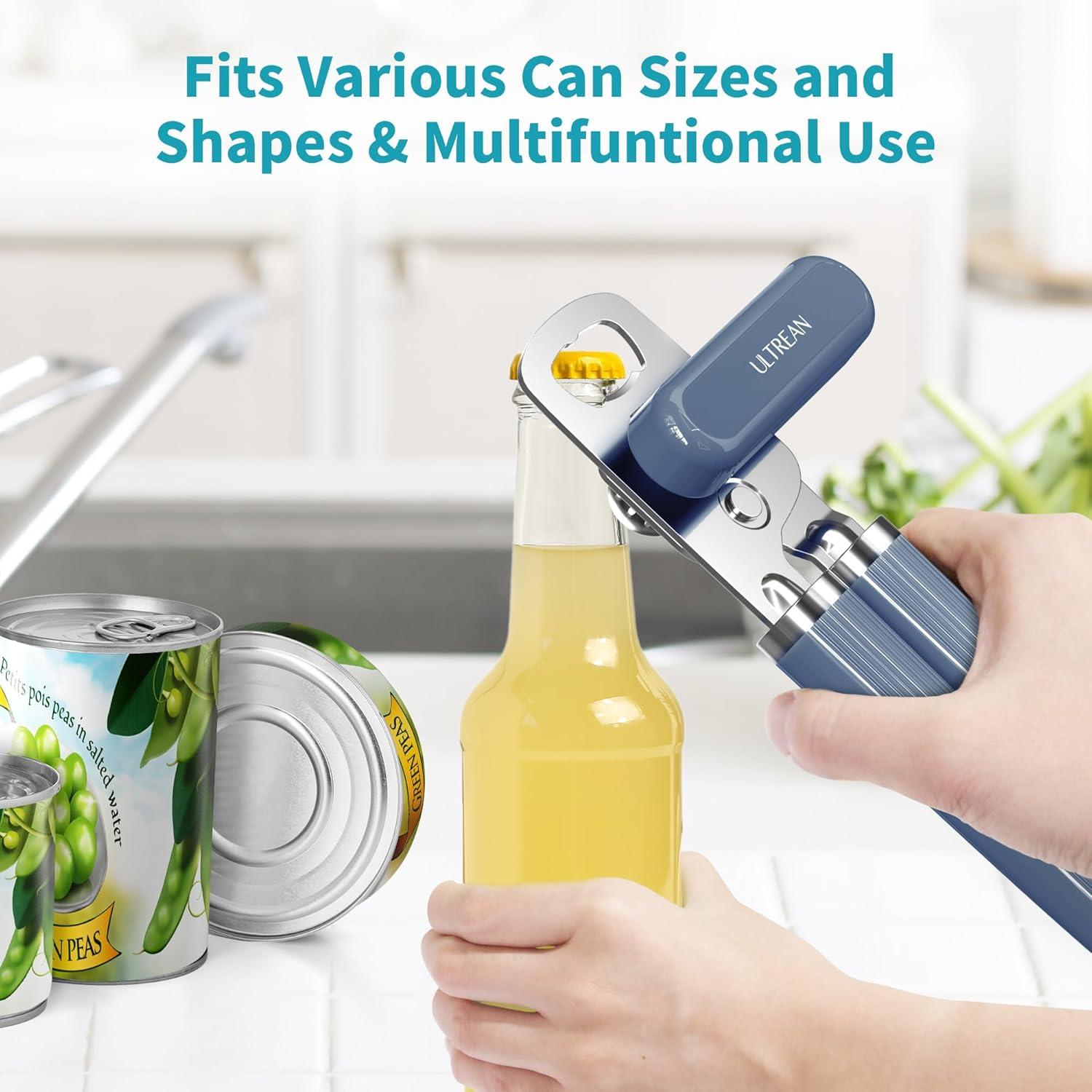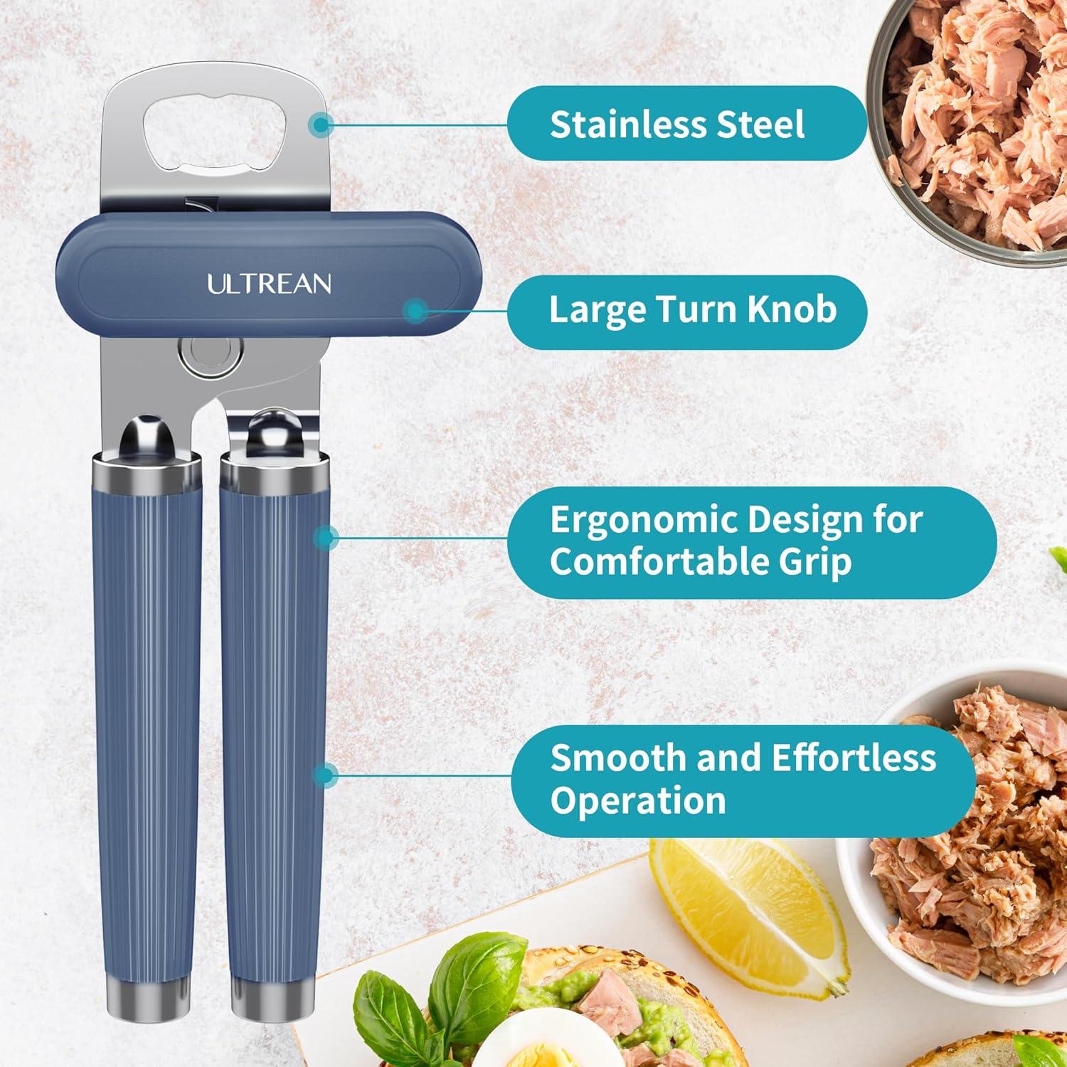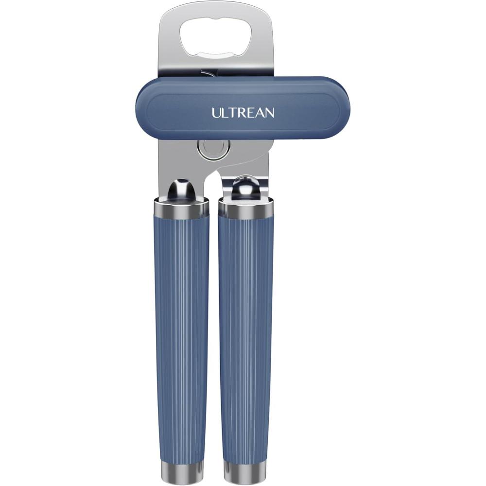 imageUltrean Manual Can Opener Bottle Opener Heavy Duty Stainless Steel Smooth Edge Manual Hand Held Can Opener With Soft Touch Handle Rust Proof Oversized Handheld Easy Turn Knob GrayNavy Blue