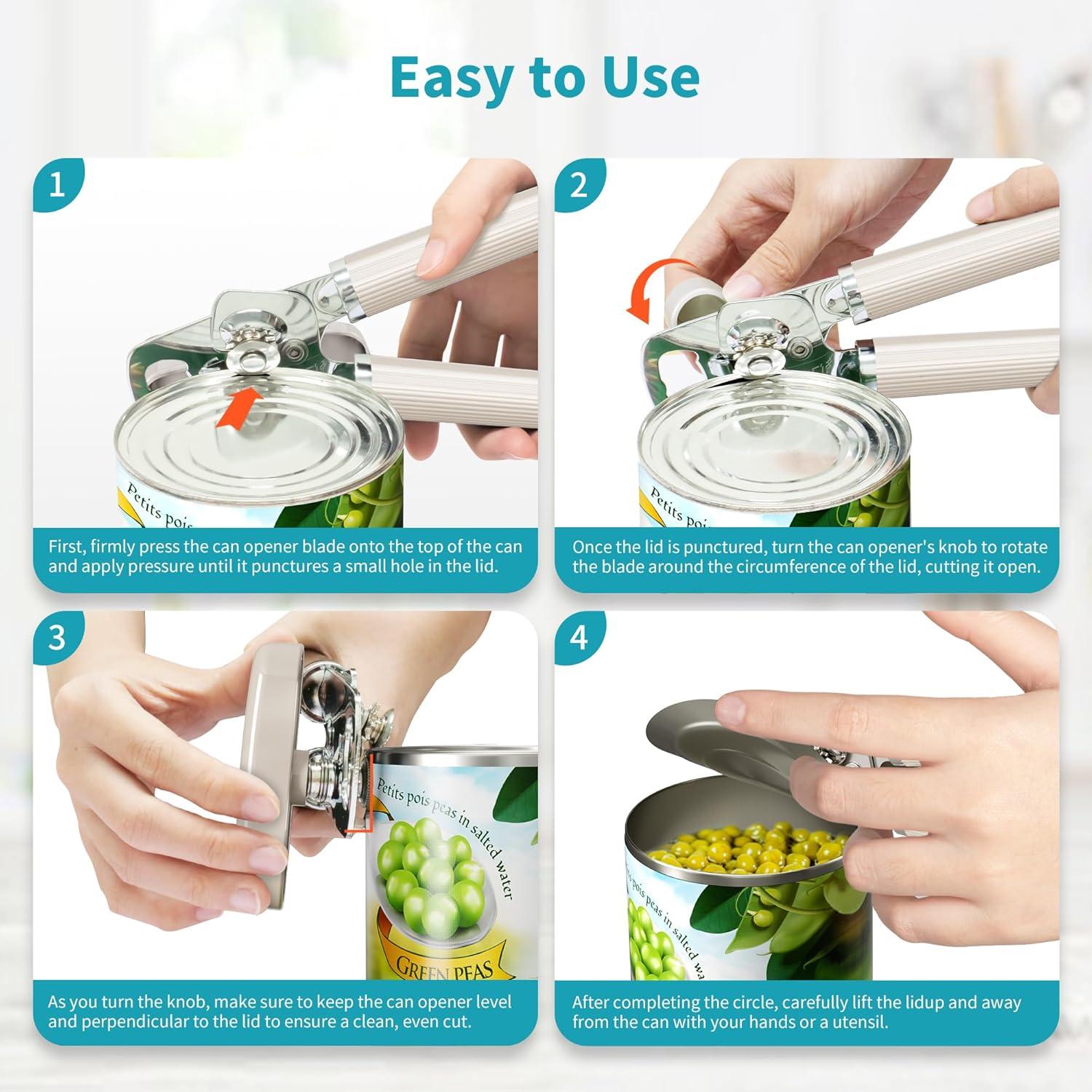 Easy to Use and Store: Our handheld bottle Opener can opener is designed for utmost user convenience. Featuring a sharp cutting wheel and a puncture mechanism, it simplifies the can-opening process. To use, simply position the opener's puncture point at the top of the can, apply slight pressure to create a hole, then attach the opener securely to the can's rim. Effortlessly turn the handle to rotate the cutting wheel along the can's edges until it completes a full rotation.