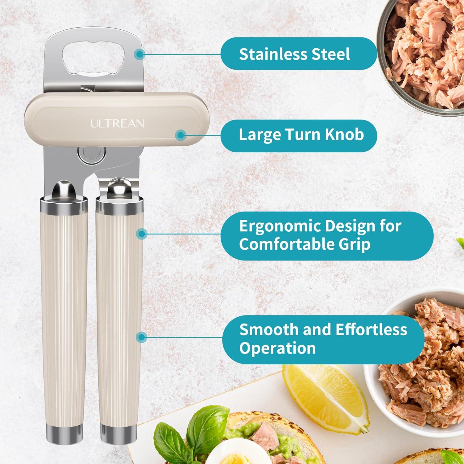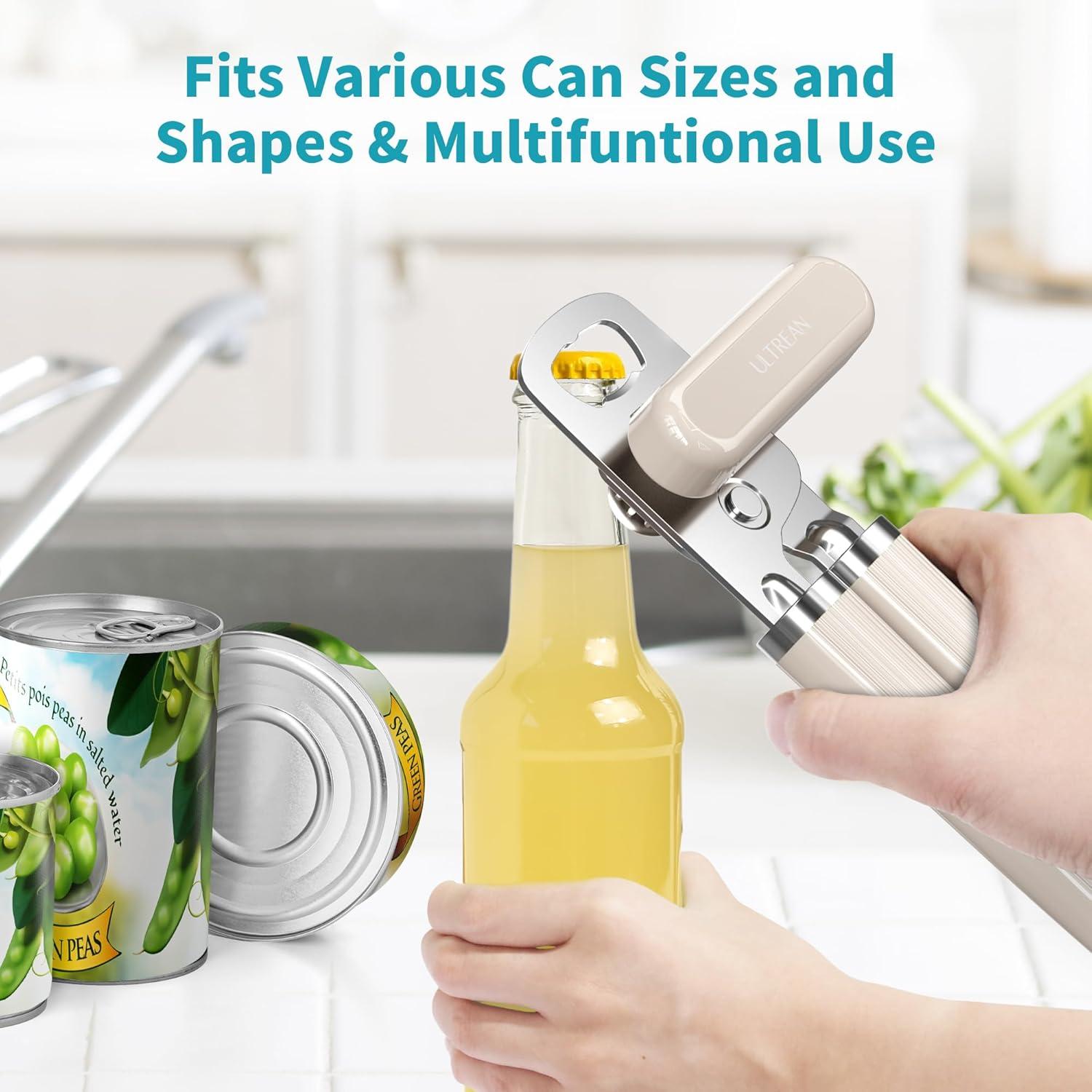 Ultrean Manual Can Opener Bottle Opener, Thickened Heavy-Duty Stainless Steel Construction, Durable and Built to Last, Smooth Edge, Ergonomic Handles, Rust Resistant, Oversized Easy-Turn Knob-Black(Apricot Yellow)